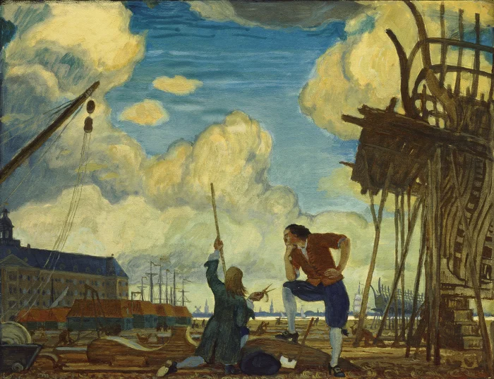 Петр Великий в Голландии. Амстердам. Верфь Ост-Индской компании. Эскиз (1910)