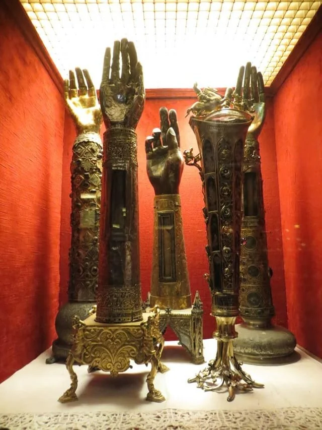 Святые мощи, похищенные из Константинополя латинскими крестоносцами в 1204 году. Из сокровищницы базилики Святого Марка, Венеция, Италия.