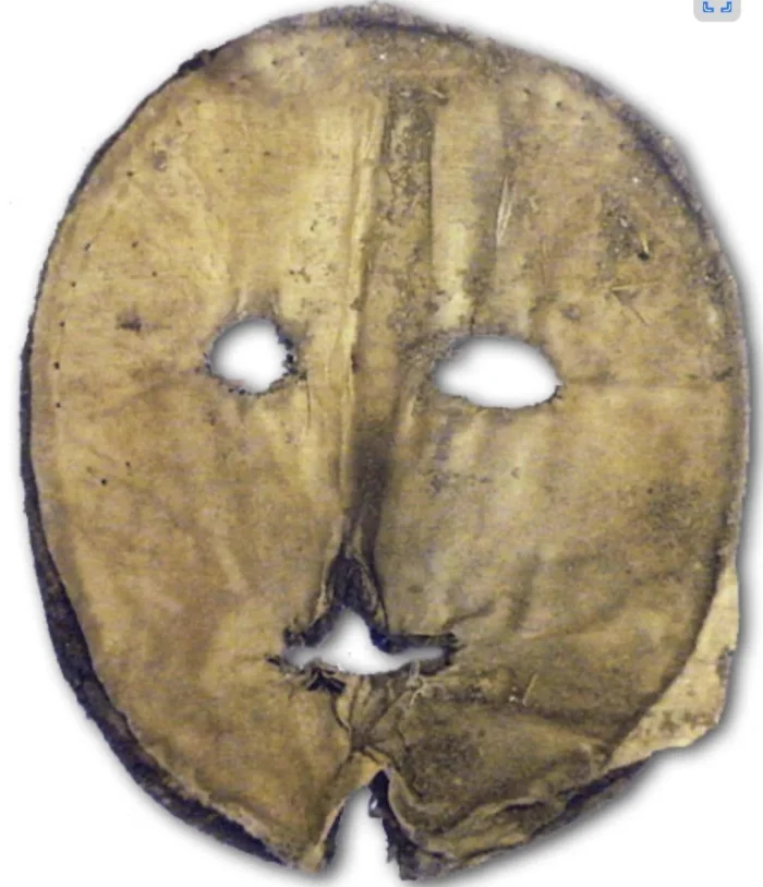 Маска 16-го века. Визард, вероятно, использовался для того, чтобы скрывать или защищать лицо благородной женщины во время путешествия. Внутри шёлк, снаружи чёрный бархат.