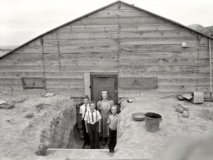 На Среднем Западе и Юго-Западе засуха усугубила экономический кризис. Это привело к массовой миграции местных жителей. Таких переселенцев пренебрежительно называли «Оки» (от «Оклахома»), независимо от того, откуда они были родом. «Оки» часто становились героями фотографий Ланж. Доротея Ланж входила в группу фотографов, которые получили заказ от правительственного агентства «Администрации по защите фермерских хозяйств», документировать исход сельскохозяйственных рабочих в поисках работы на больших плантациях Центральной долины в Калифорнии.