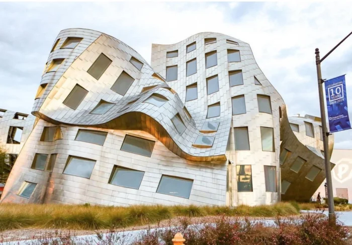 Это здание, являющееся частью медицинского центра, напоминает мозг в разрезе, что намекает на миссию центра: исследования болезни Альцгеймера, Паркинсона и других неврологических заболеваний.