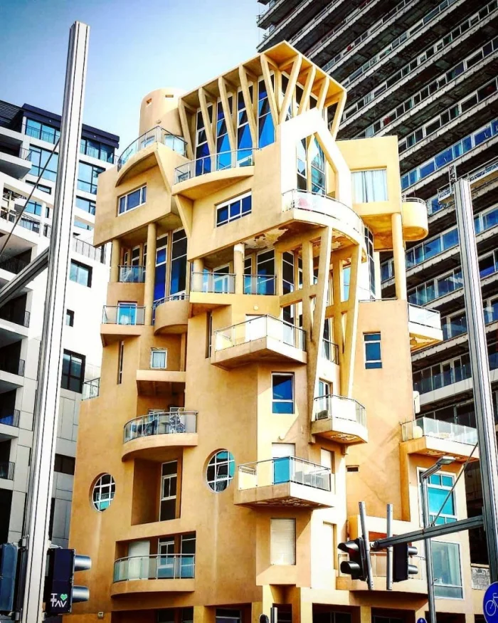 Среди строгих зданий Тель-Авива выделяется «Дом на променаде». Это архитектурный каприз, возникший из газетной шутки. Профессор архитектуры Зви Хекер в 1980-х годах нарисовал фантастический проект для газетной колонки. Местный бизнесмен, впечатлённый эскизом, предложил финансировать постройку. Вопреки всем нормам и стандартам, "Дом на променаде", напоминающий дерево с ветвями-балконами, был возведён в 1993 году.