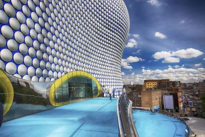 В 2003 году Бирмингем получил одно из самых необычных зданий Великобритании. Это торговый центр Селфриджес Билдинг (Selfridges), чей фасад выглядит так, будто его обернули в гигантскую пузырчатую плёнку. Этот авангардный дизайн стал архитектурной иконой города.
