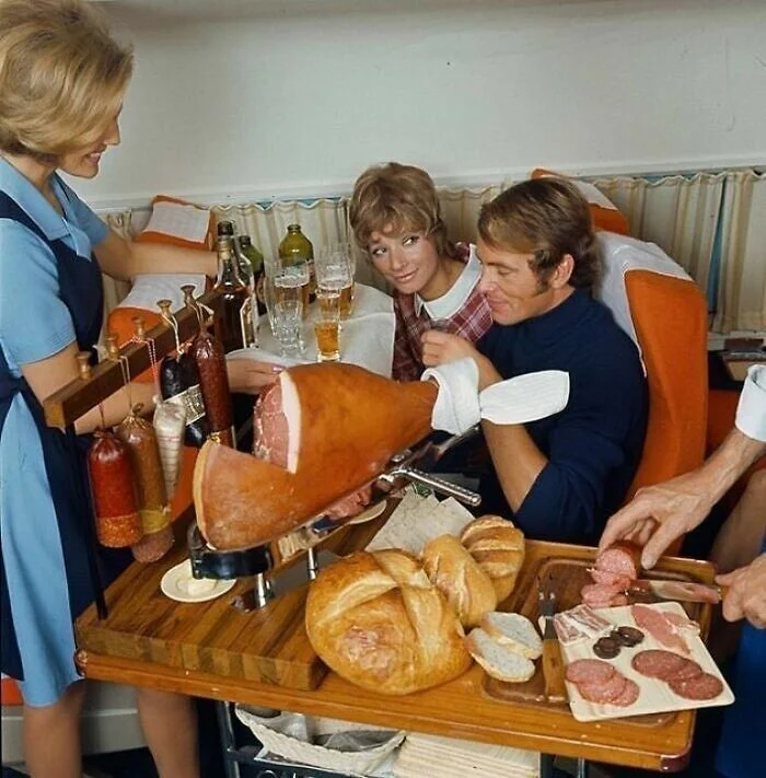 9. Подача закусок на рейсе Scandinavian Airlines, 1969 год