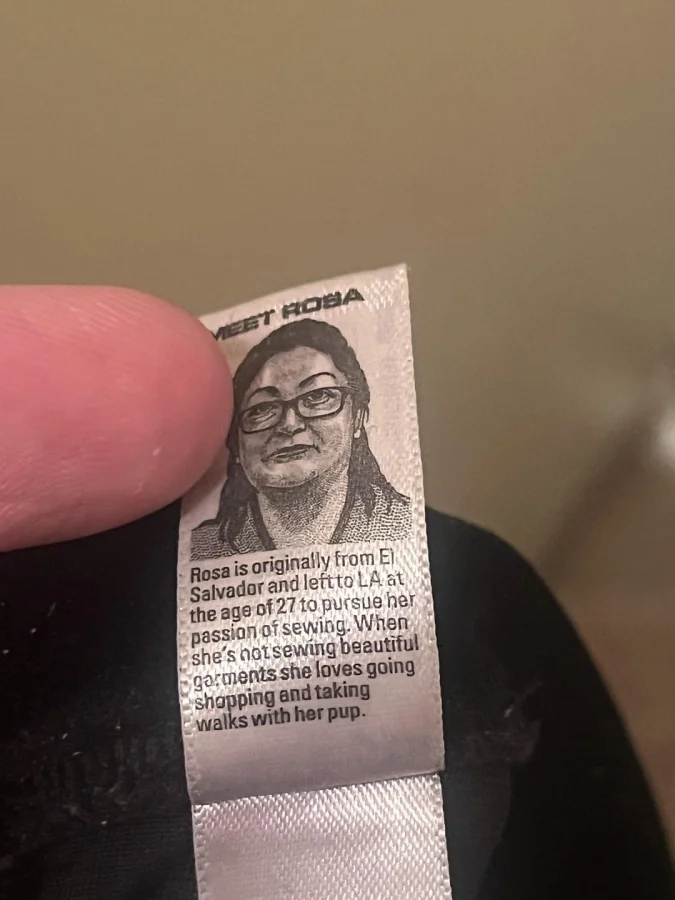 Это платье от бренда одежды Los Angeles Apparel. На бирке изображена женщина, которая его сшила.