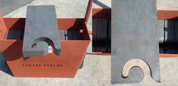 Так это грузы для проверки лифтов. Тележка весит 100 фунтов (45 кг), и там еще 8 грузов по 50 фунтов, всего выходит 500 фунтов (227 кг). Ставят сколько хотят в лифт и проверяют, тянет-не тянет.