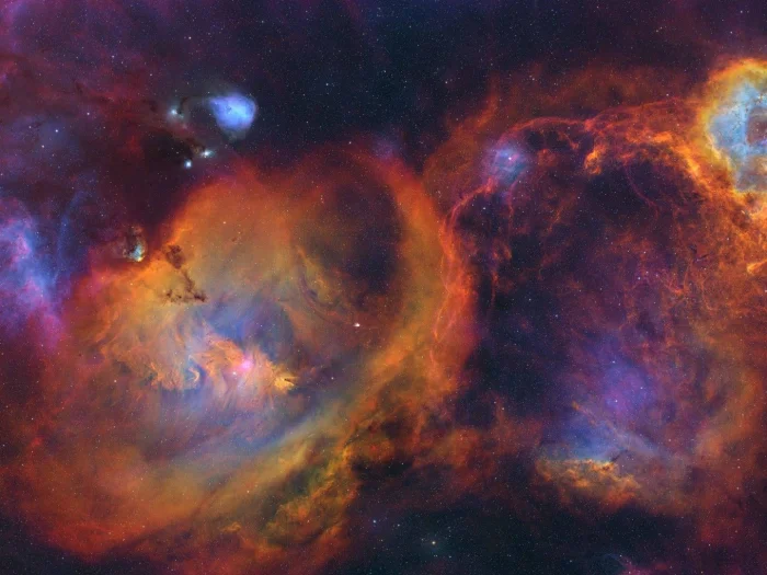 На этом снимке — все планеты Солнечной системы, кроме Земли. Каждая из них демонстрирует уникальные черты. Меркурий, ближайший к Солнцу, — бесплодный мир с кратерами. Венера скрыта густыми облаками. На Марсе, Красной планете, есть обширные пустыни и самый большой вулкан в Солнечной системе. Газовые гиганты, Юпитер и Сатурн, доминируют своими огромными размерами и мощными циклонами. Кольца Сатурна придают ему особое величие. Ледяные гиганты Уран и Нептун богаты метаном, что придаёт им синий цвет.