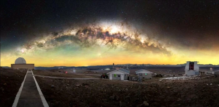 Этот снимок сделан с обсерватории Маунт Джон, главного оптического центра Новой Зеландии. На нем виден западный горизонт. Справа находится телескоп MOA-II — крупнейший в стране. Обсерватория расположена в южном полушарии, поэтому Млечный путь тянется параллельно горизонту, создавая впечатляющие композиции.