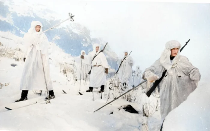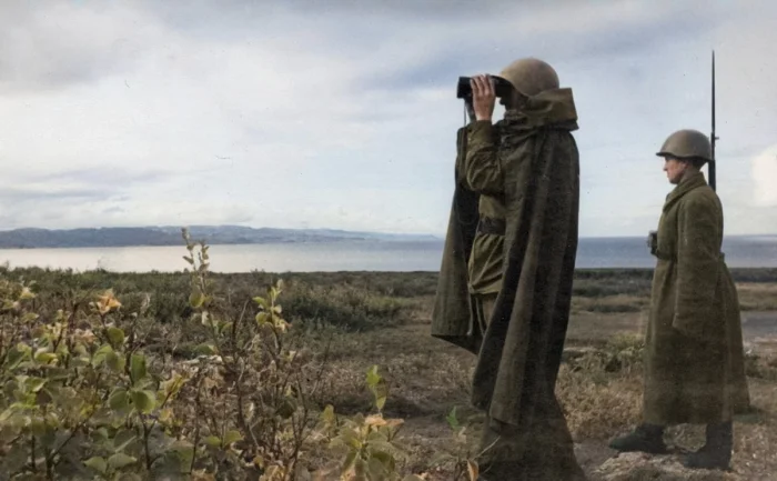 Советские солдаты патрулируют побережье Петсамо, Финляндия, 1942 год.