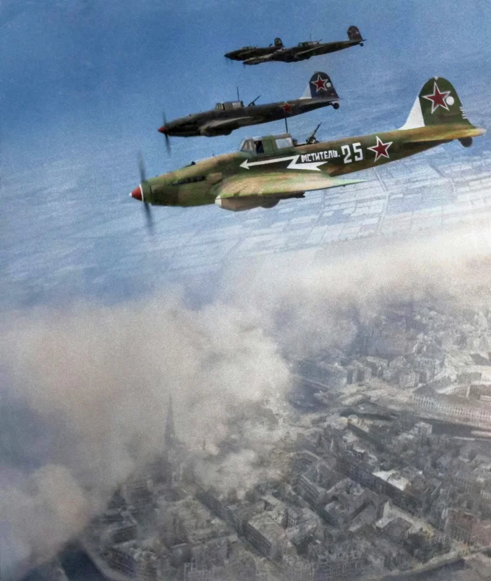 Штурмовики Ил-2 возвращаются с задания, 1945 год.