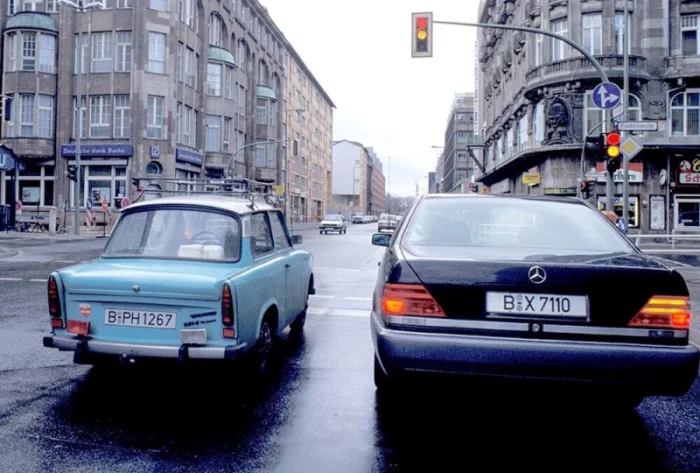 6. Представители двух Германий встретились на светофоре: восточный «Трабант» и западный «Мерседес S-класса». 90-е
