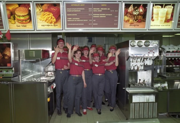 23. Персонал Макдональдса на следующий день после открытия, Москва 1990 г.