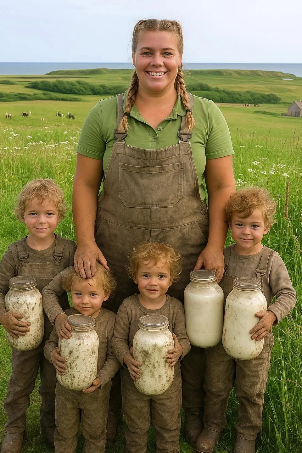 Мама, четверо сыночков, пять банок молока. Плохо еще у ИИ с руками)