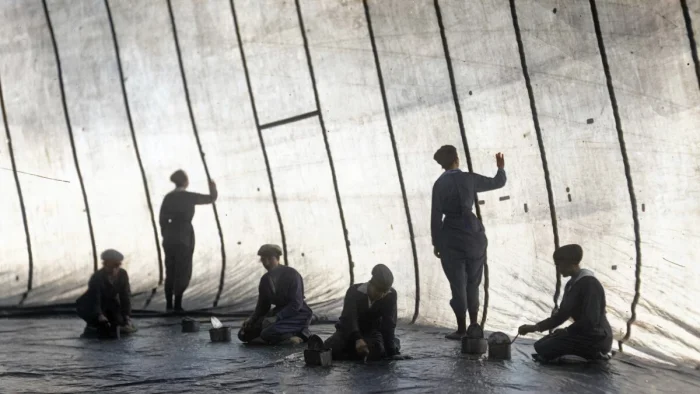 Внутренняя часть дирижабля Цеппелин ремонтируется на фабрике Short Brothers Works, 1919 год.