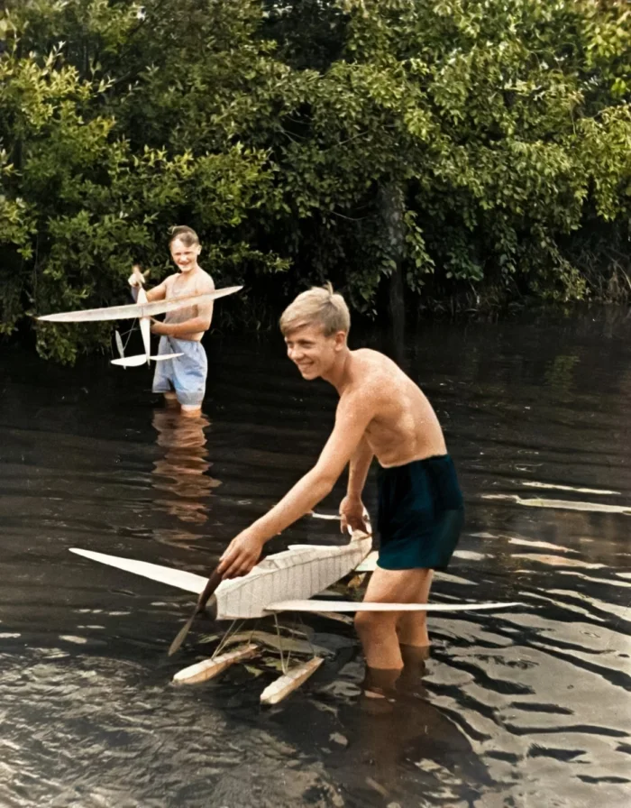 4-я конференция молодых московских мастеров авиамоделизма на станции "Планерная". Участник с моделью гидросамолета, 1938 год.