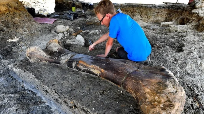 Во Франции раскопали бедренную кость динозавра весом в полтонны. Это останки зауропода, который бродил по Земле 150 миллионов лет назад. Фрагмент обнаружили в 2019 году на палеонтологическом участке Анжак-Шарант (юго-запад Франции). Этот регион известен как "динозавровый Эльдорадо".
