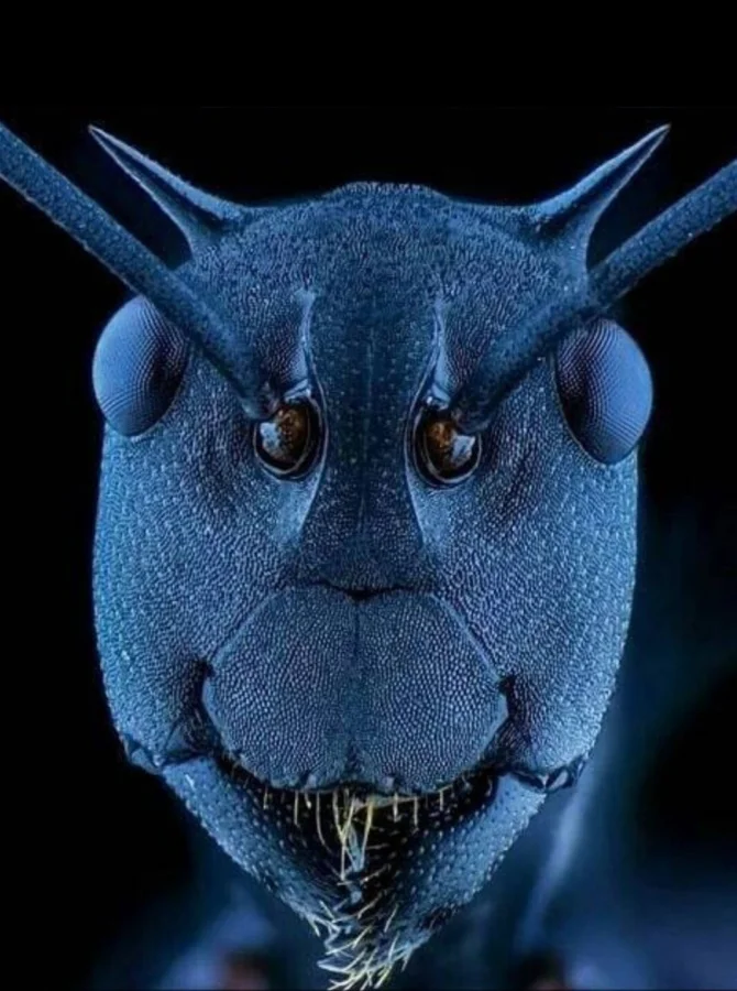На первый взгляд, это изображение кажется довольно жутким, поскольку отверстия для усиков муравья больше похожи на глаза. Изображение было получено с помощью электронной микроскопии, которая представляет собой метод получения изображений с высоким разрешением и гораздо большим увеличением, чем при использовании обычного светового микроскопа. Он используется в биомедицинских исследованиях для углубленного изучения структуры биологических материалов наряду с различными другими объектами.