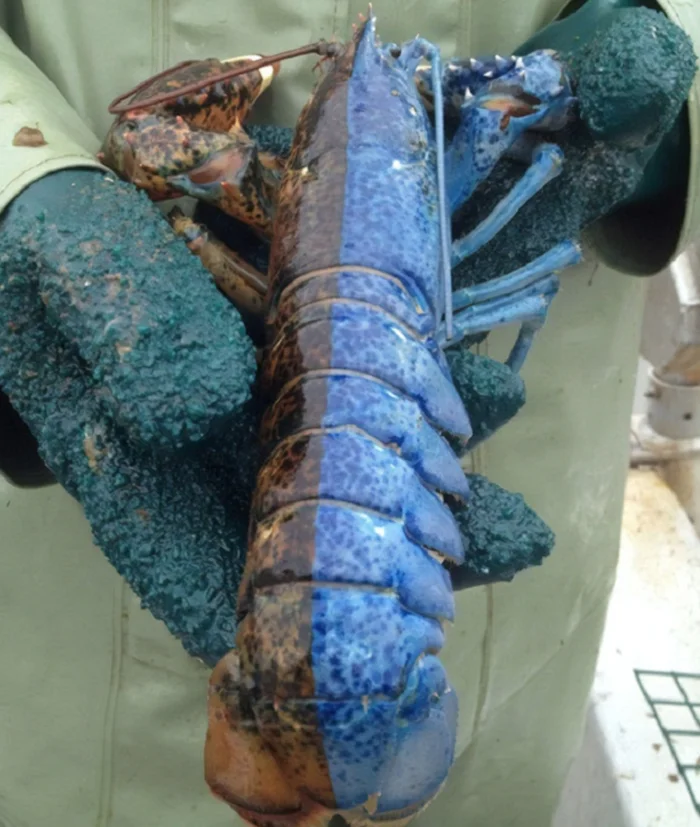 Гинантроморфный омар - редчайший генетический феномен в мире ракообразных. Левая сторона самка (синяя), правая — самец (коричневая). Внутренние органы имеют соответствующую половую принадлежность. Встречаются 1 на 50 миллионов особей.