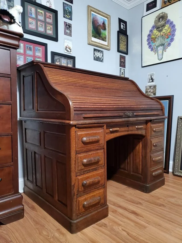 14. Письменный стол с откидной столешницей, изготовленный в 1880-х годах и отреставрированный в 70-х годах - история реставрации и сохранения