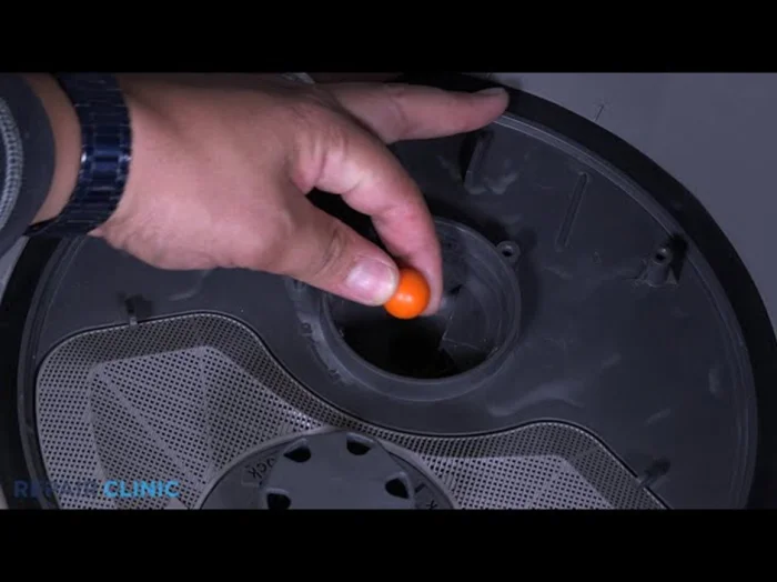 А это оранжевый фильтровальный шарик — часть системы фильтрации в посудомоечных машинах. Этот шарик лежит в специальном отсеке в фильтре внизу посудомойки. Он двигается вместе с потоком воды во время цикла мытья, закрывая путь к мелкому фильтру. Это предотвращает попадание крупных частиц в насос и защищает систему от засоров, а еще мешает воде из канализации вернуться обратно.