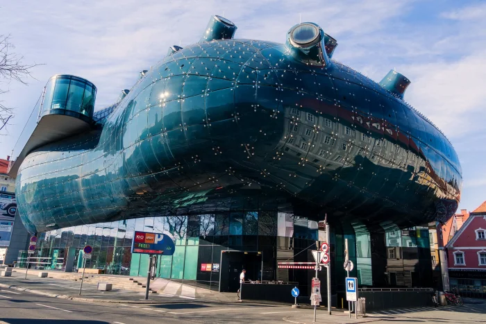 Среди барочных крыш и средневековых улочек австрийского Граца появился такой синий "дружелюбный пришелец" – музей современного искусства.