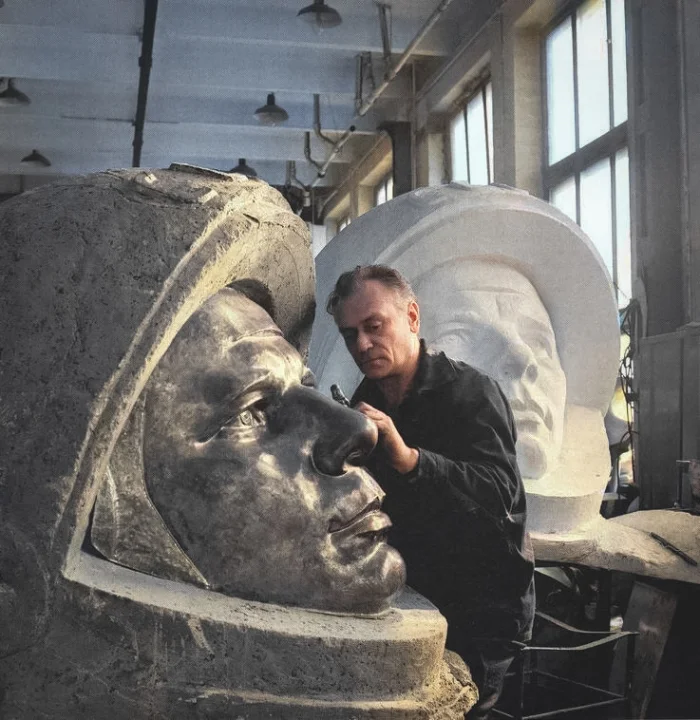 Скульптор Иван Миско работает над скульптурой советского космонавта Юрия Гагарина, 1962 год.