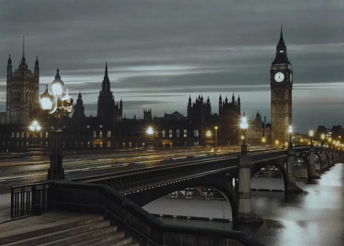 Вестминстерский мост и здание парламента ночью, 31 января 1973 года.