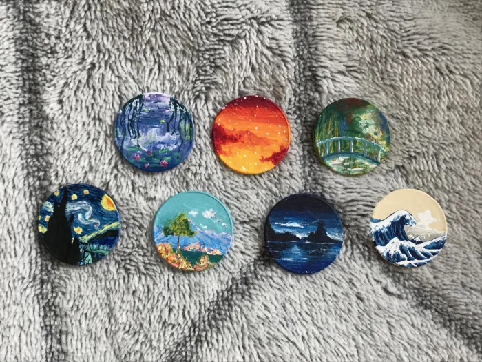 7. Мини-копии известных картин, написанные акрилом на пенни