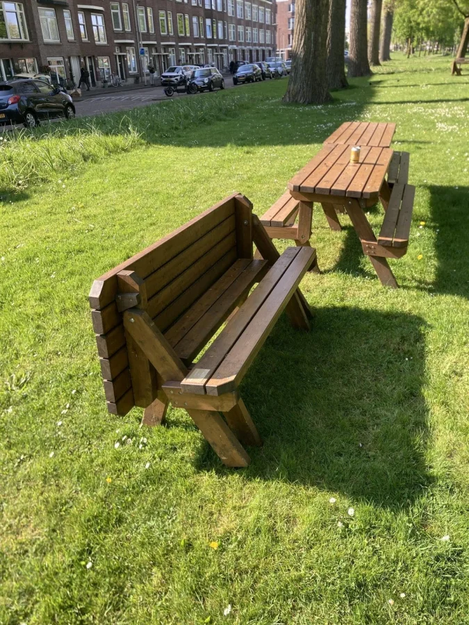 Удобные скамейки, которые также служат столами для отдыха на свежем воздухе