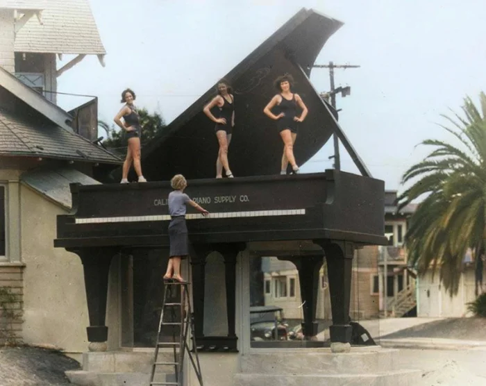 Реклама фирмы по продаже роялей. Калифорния, 1930-е.