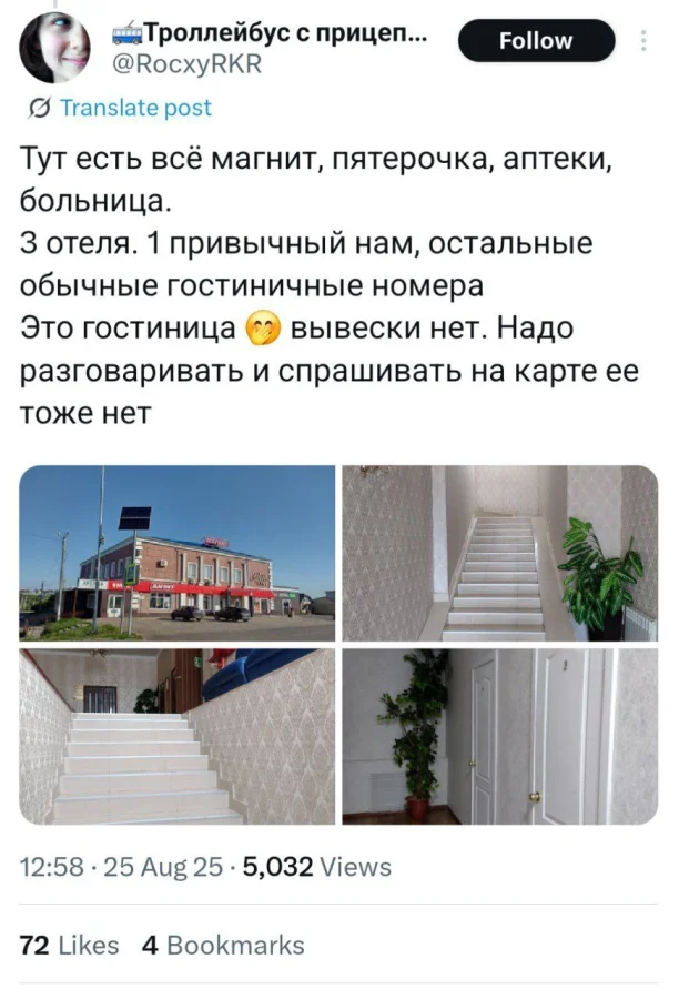 Племянница в схожем поселении живёт,хохлы даже пару дронов прислали.И асфальт есть,даже подновляют,и магазы есть,но у татар нет Высшая лига ))Нараду в Нее поболе будет,но на чуть и две реки.