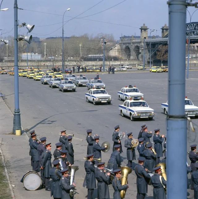Средства передвижения участников 26 съезда у гостиницы «Москва»