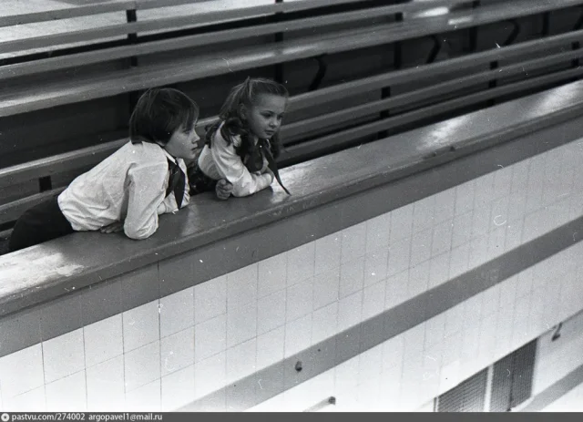 На трибуне бассейна "Пионер", что на улице Фотиевой (это Воробьёвы горы)