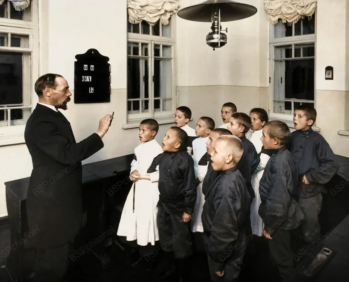 Мариинская школа глухонемых. Обучение разговорной речи в младшем классе, 1907 год.