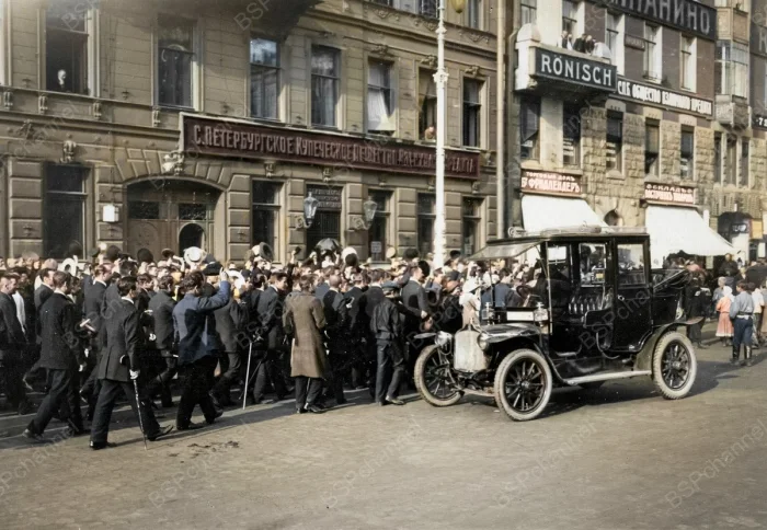 1 августа 1914 года, после официального объявления войны Германии, в российских городах, особенно в столицах — Петербурге и Москве, прошли массовые народные манифестации. Улицы заполнили толпы людей: студенты, рабочие, чиновники, интеллигенция, духовенство — все вместе выражали патриотический подъём и поддержку страны в начале Первой мировой войны.