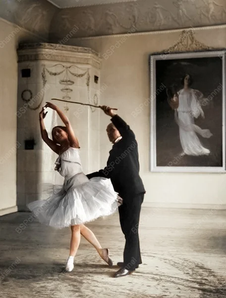 Балерина Анна Павлова на репетиции с педагогом Энрико Чекетти в своей студии, 1907 год.