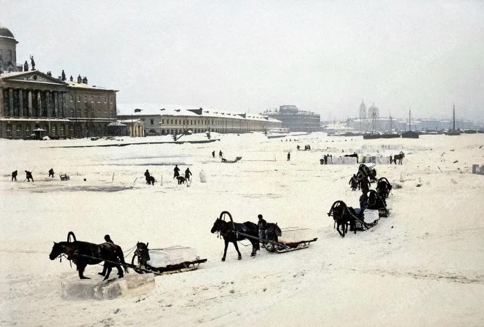 Вывозка льда с Малой Невы, 1890-1899 год.