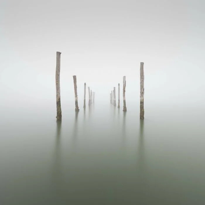 Эти фотографии — часть серии, снятой в северной части Венецианской лагуны, где я живу. Я использую длинную выдержку и иногда ставлю штатив прямо в ил. Особенно мне нравятся туманные дни, потому что они помогают лучше выделить объекты съёмки.