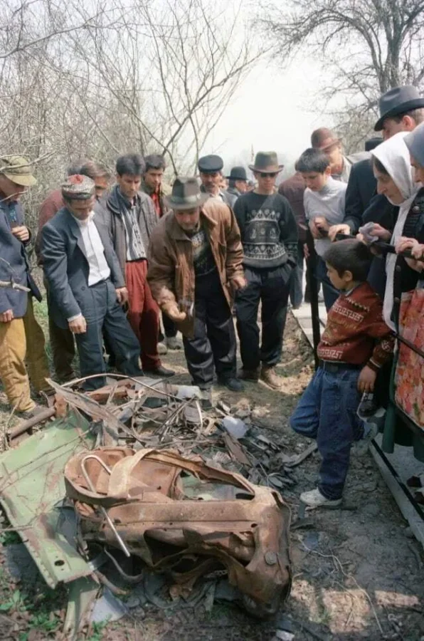 Чеченцы на месте гибели Джохара Дудаева, 1996 год.
