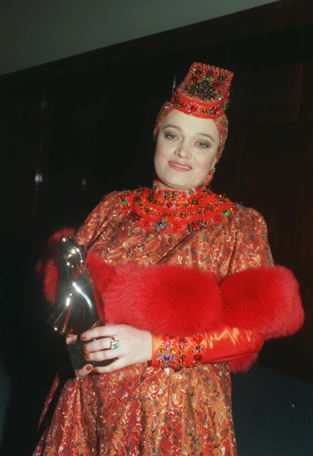Надежда Кадышева и ансамбль «Золотое кольцо» с наградой премии в номинации «Фольк-группа года» на церемонии вручения Национальной музыкальной премии «Овация» в Москве, 1999 год.