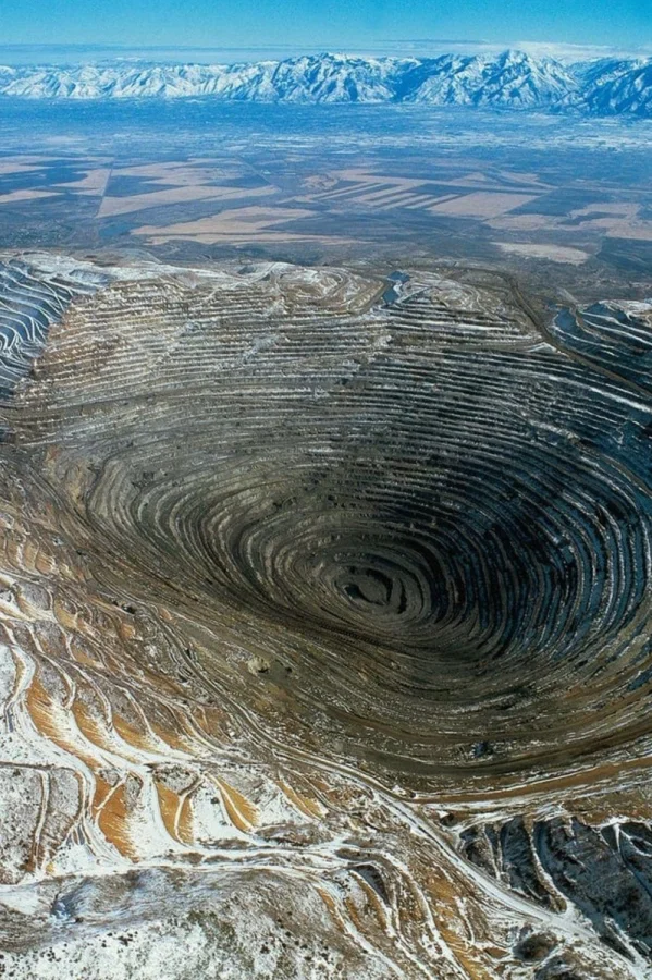 Бингем-Каньон — гигантское меднопорфировое месторождение, открытое в 1906 году. Его площадь составляет 9 км², а глубина — 1,2 км.