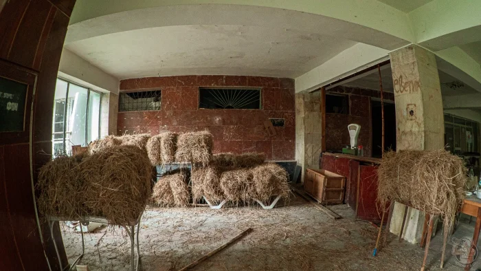 Казалось бы, идеальное место по нашим предпочтениям, но существовала одна особенность. База отдыха оказалась полностью заброшенной и никому не принадлежащей. Однако наличие сена на первом этаже свидетельствовало о том, что совсем недавно здание использовали как хозяйственное помещение.