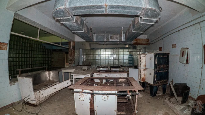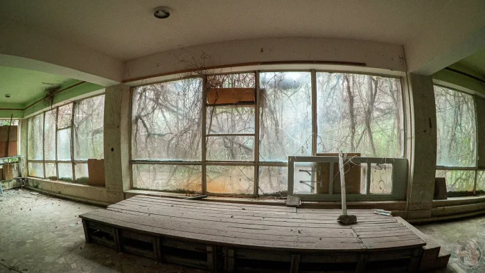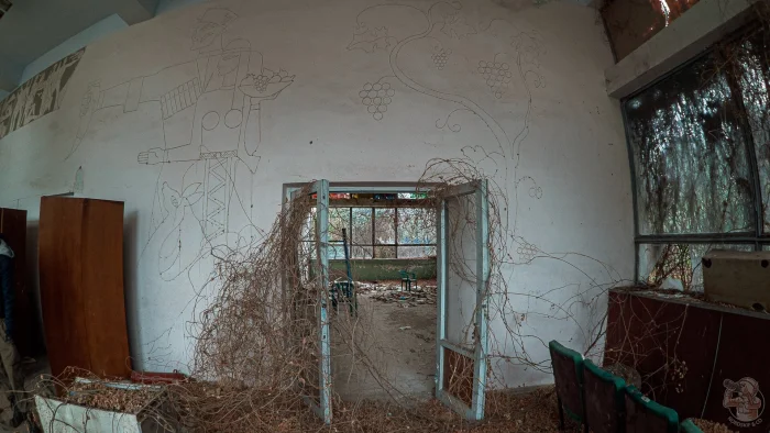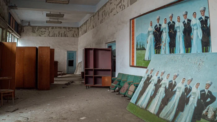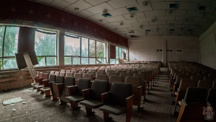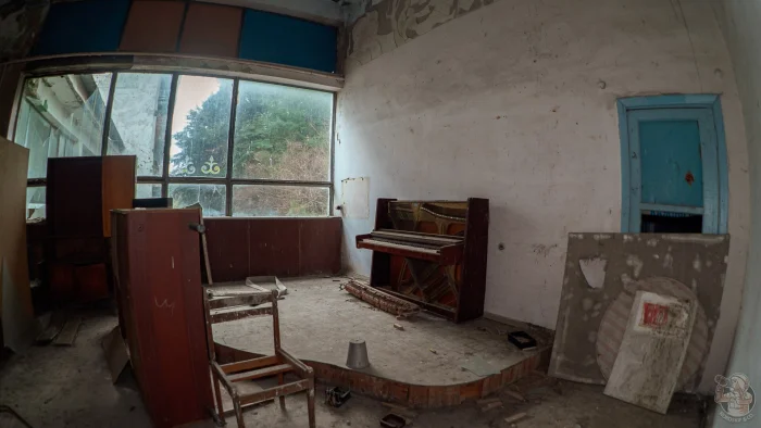 Наибольшее впечатление произвел просторный актовый зал, по масштабам которого можно было судить о былом количестве отдыхающих. Когда-то здесь демонстрировали кинофильмы и выступали артисты, но в тот пасмурный день его посетителями стали лишь несколько путешественников, отчаянно искавших убежище.