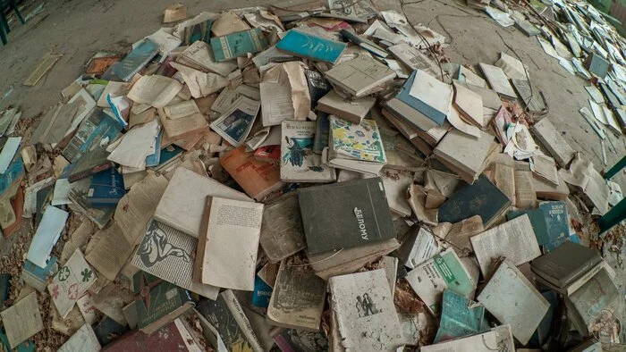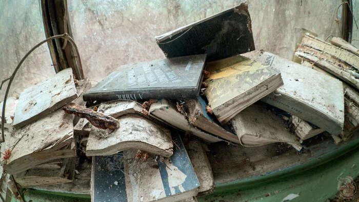 ...правда, состояние книг было настолько плачевным, что их невозможно было даже взять в руки. Они отсырели, покрылись плесенью и слиплись, напоминая забытые на годы продукты. К сожалению, спасти это собрание уже не представлялось возможным.