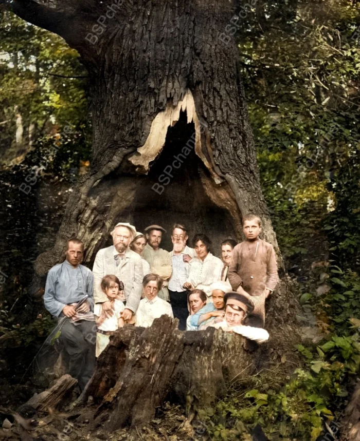 Владимир Вернадский с близкими в дупле дерева на даче.