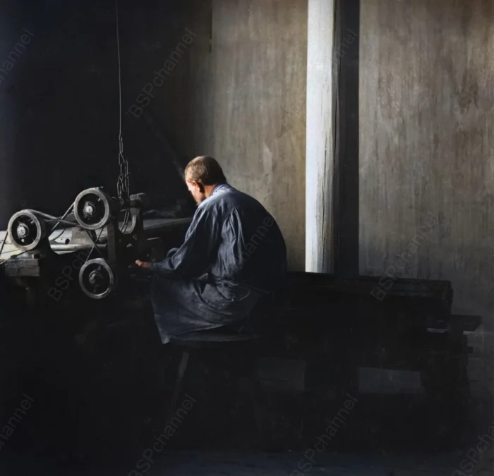 Обработка орлеца на Императорской Гранильной фабрике. Екатеринбург, 1910 г.