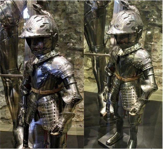 Миниатюрный полевой доспех (1600–1649 гг.), принадлежавший ребёнку из знатного рода. Этот экспонат Королевской оружейной палаты напоминает о суровых реалиях взросления аристократии в эпоху войн.