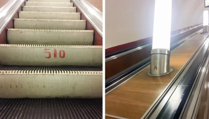 Зачем нужны цветные полосы на ступенях эскалатора и щетки внизу балюстрады?