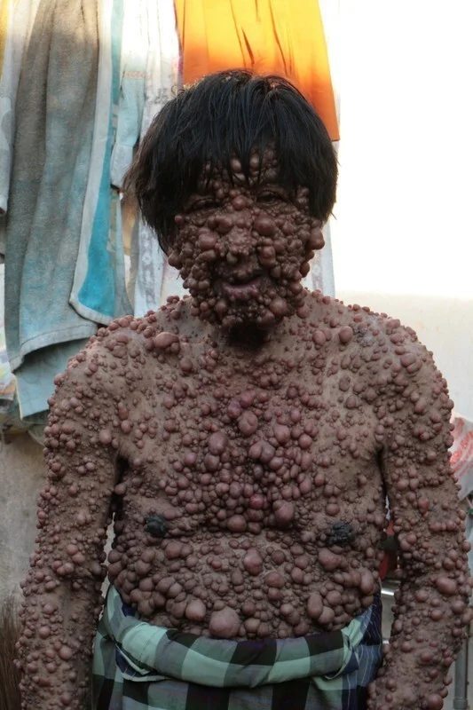 Отец четырех детей из Индонезии страдает от тяжелой формы редкого генетического заболевания, которое вызывает рост доброкачественных опухолей по всему телу. Заболевание встречается у одного человека из 2500.