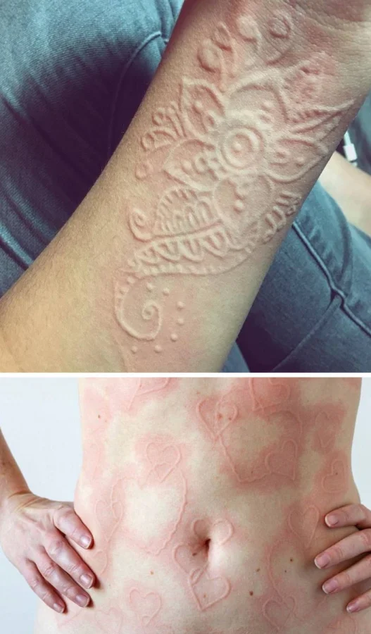 Это редкое состояние, которым страдает лишь 2% населения планеты. Даже легкое механическое воздействие на кожу вызывает появление рубцов, которые исчезают через полчаса. Некоторые люди с этим феноменом создают на своей коже настоящие рисунки.